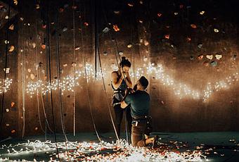 Sus amigos ayudaron a Luis a formular un plan para decorar el ambiente del gimnasio y ambiente al espacio quedo impactante.Parecía una cueva llena de luces y pétalos de rosa pero era el Elevation Rock Gym pronto para ser testigo de una propuesta romántica e importante para dos personas.
