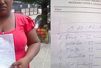 Un médico brasileño recetó candados “para la boca, la nevera y el armario” a una mujer para que adelgace, y fue suspendido temporalmente de sus funciones, informó el sábado el diario Folha de Sao Paulo. Adriana Santos, de 33 años, salió de su visita al médico con una extraña receta en la que la prescripción indicaba “cadialina” -en español algo así como “candadolina”- y ella le preguntó dónde podría comprar ese medicamento. A lo que el médico le contestó que en una ferretería, donde podría adquirir seis candados: “uno para la boca, otro para la nevera, otro para el armario, otro para el congelador y otro para el cofre de seguridad de la casa”, explicó la mujer, que afirmó medir poco más de metro y medio y pesar 100 kilos.