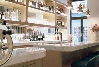 Jaime Hayón ha diseñado Le Sergent Recruteur, un sofisticado restaurante en el corazón de Paris que nos recuerda a las antiguas brasseries. Los muebles hechos a medida, las paredes de piedra, los techos de madera pintados en blanco, las formas curvas, las tapicerias en verde oscuro y los detalles en oro hacen que este espacio sea acogedor y elegante.