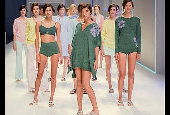 De la mano del punto roma aparecen los colores pastel que, como las peladillas de un convite, celebran la candidez. Minifaldas y pesqueros que arropan camisetas dibujadas con un trazo ingenuo, infantil; jerséis luminosos, chaquetas y cardigans despendolados con los costados abiertos o asimetrías de volumen. Acabados artesanos y teñidos en prenda, primorosamente administrados para que sean suaves y blandos.