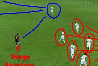 Puede que muchos ya vieran esta imagen, yo no la había visto, pero creo que corresponte al penúltimo clásico. Despues de verla ahora comprendo por que al Madríd le marca un gol Abidal y que Messi puede incluso no tocar balón para ser importante en un equipo, le basta con estar. Una imagen vale mas que mil palabras, aunque apuesto que esta no aparecerá en su próximo libro que llevará por título "Como engañar a miles de personas y no morir en el intento".