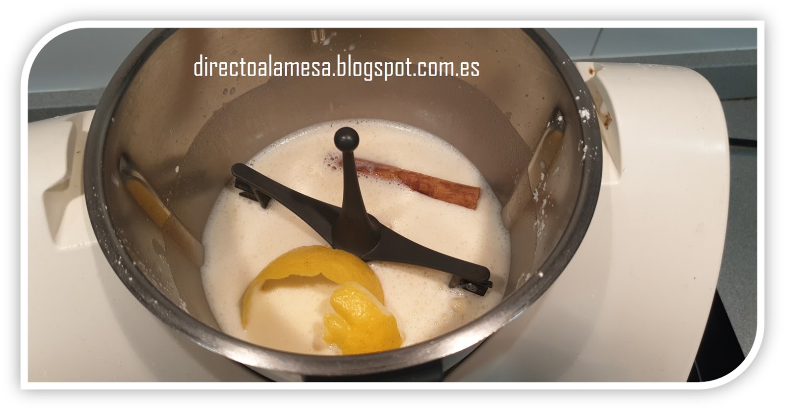 Ponemos la mariposa en las cuchillas y añadimos el palo de canela y la piel del limón. Programamos 9 minutos a 90ºC velocidad 2.