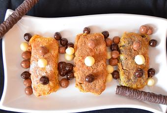 Cuando este fría se parten en trocitos, se pasa por harina y huevo y se fríen en el aceite no muy fuerte, se colocan en un plato con papel de cocina.