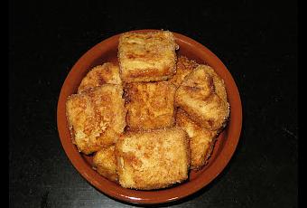 Al día siguiente se corta en trozos y se pasa por harina, huevo y se pone a freír en abundante aceite de girasol. Se saca se reboza en azúcar y canela y ya está lista para degustar.