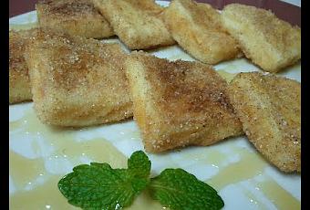 Obtenemos 203 KCAL distribuidas de la siguiente manera: 34.8 gr. Hidratos de Carbono, de los cuales 34.8 gr. Azúcares, 4.7 gr de Proteínas, 4.9 gr de Grasas de las cuales 2.3 gr. Saturadas. Los ingredientes que necesitaremos para 5 raciones:500ml de Leche65 gr de Maicena75 gr de Azúcar½ Piel de Limón1 Rama de CanelaHuevo y harina para rebozarMezcla de azúcar y canela molida para espolvorear