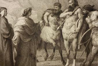 A) Di si son verdaderas o falsas estas afirmaciones relacionadas con la escena que plasma la imagen de arriba: 1. Dante y Virgilio están en el séptimo círculo del Infierno. 2. De los tres centauros representados, el del centro, que tiene la flecha en mano y está pensativo, es Quirón, preceptor de Aquiles. 3. El que está a la derecha de Quirón es Neso, que murió por la bella Giacometta. 4. El otro es Folo, de carácter pacífico y meditativo. 5. Es precisamente Folo quien se ha percatado de que Dante no está muerto y exclama: "¿Habéis visto que el de atrás va moviendo lo que toca y los pies de los muertos no hacen eso?" 6. "Vivo y bien vivo está", les está diciendo Virgilio a los centauros, y tras explicarles que su viaje es un deber y no un paseo, les pide que uno de ellos lleve a Dante sobre su grupa. 7. Los centauros circundan el foso a millares y disparan a las almas que asoman la cabeza del río sanguinolento más de lo debido. 8. Folo ordena a Neso que los lleve diciéndole: "Vuelve atrás y ve con ellos, y ábreles paso si otra hilera topas". 9. Cuando los los transporta, Neso les explicará que los que están hundidos hasta las cejas son tiranos. 10. En esta situación verán a Alejandro, Dionisio y Ciro el grande. 11. También verán a uno de cabellera rubia, que es Obizzo d’Este, asesinado por su propio hijastro. 12. Aunque el centauro los guiará, Virgilio le recuerda a Dante: "Yo sigo siendo tu primer guía". 13. La hondura del río aumentando o disminuye, cubriendo por completo a los más violentos; es el caso de Atila, Pirro, Sexto o Riniero de Corneto. 14. El río que atravesarán Dante y Virgilio a la grupa del centauro es de sangre hirviendo.B) En este enlace (solo para participantes inscritos) puedes ver varias ilustraciones relativas a los cinco cantos leídos esta semana. Siempre hay dos que plasman una misma escena del poema. Agrúpalas por parejas y elige para cada par el pie descriptivo más adecuado de entre los que se ofrecen a continuación (entre paréntesis se da la cita exacta: número de canto y versos)::