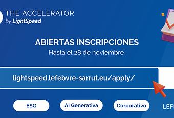 Lefebvre Sarrut, líder europeo en conocimiento jurídico y fiscal, anuncia la apertura de inscripciones en la tercera edición de su programa de aceleración de start-ups LightSpeed Accelerator. Las start-ups de toda Europa tienen hasta el 28 de noviembre para inscribirse (aquí). Este año la convocatoria se centrará en soluciones medioambientales, sociales y de gobernanza (ESG), IA Generativa para el sector jurídico y soluciones legales para el mercado empresarial (recursos humanos, compliance, etc.).