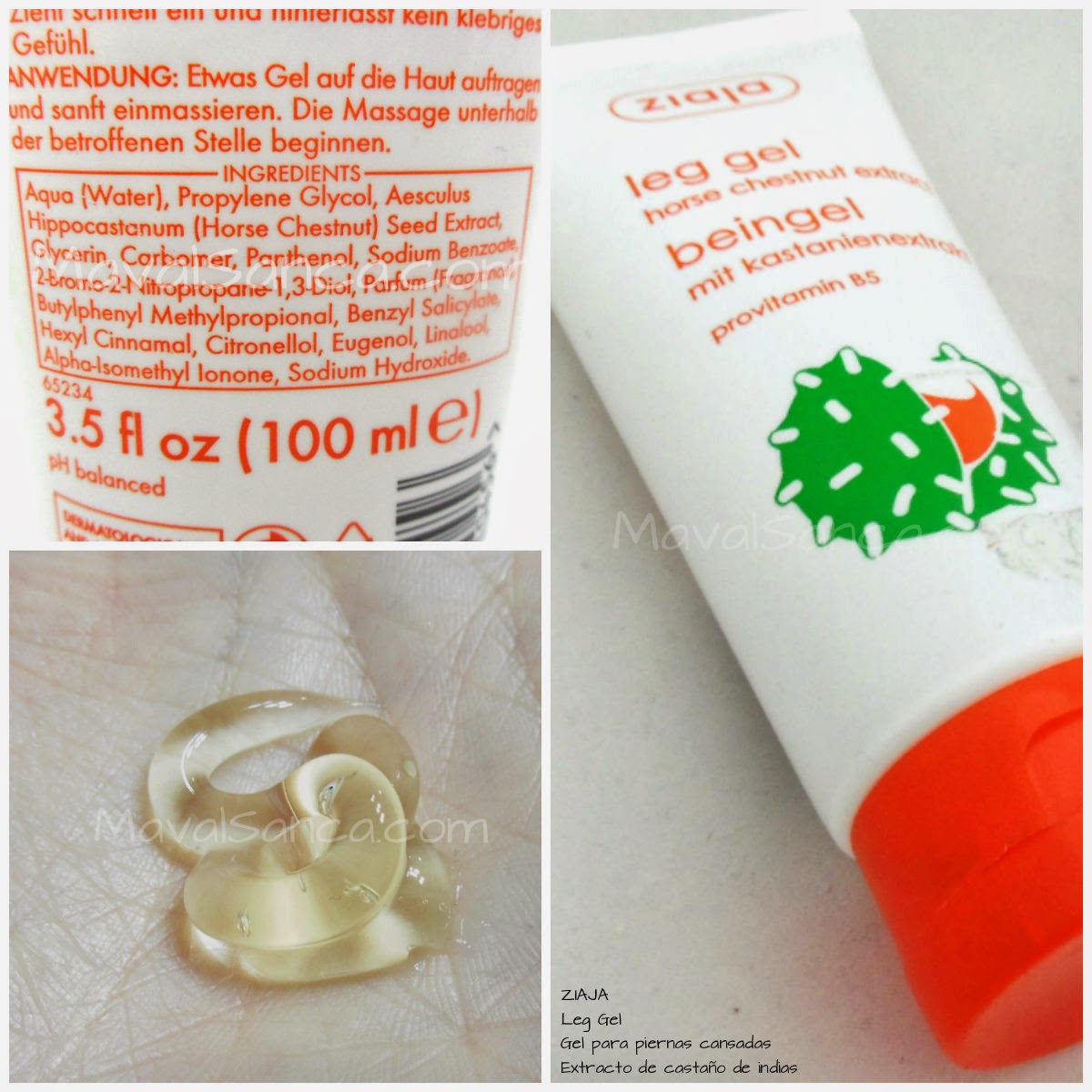El Leg Gel de Ziaja es un gel transparente de textura ligera.Se aplica muy fácilmente y se absorbe muy rápido.Tiene un olor indeterminado pero para mi muy agradable.Ziaja Leg Gel is a clear gel with light texture. It's very easy to apply and absorbs very quickly. Has random but to my pleasant smell.Sus ingredientes activos son: