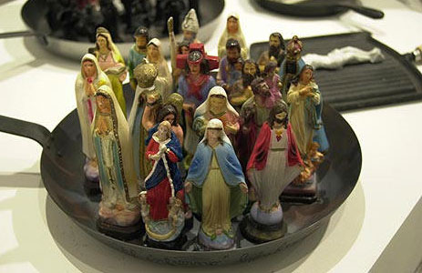 Abajo, "La civilización occidental y cristiana", obra cumbre de Ferrari: avión de juguete y Cristo de santería.