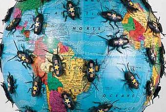 Cucarachas con barras y estrellas asuelan al mundo; una "fina" alusión del astro conceptual León Ferrari.