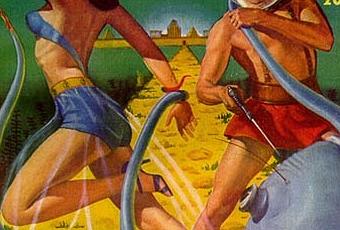 Venus, Marte y Júpiter son los tres planetas de nuestro sistema solar que han alimentado la imaginación de los escritores. Poul Anderson con Llamadme Joe (1957) y Clarke con 2001. Una odisea del espacio (1968) dieron vida a Júpiter. Marte, desde H. G. Wells con La guerra de los mundos (1898), pasando por Fredric Brown y Marcianos go home (1955) al Marte rojo (1992) de Kim Stanley Robinson. Leigh Brackett ha construido sus historias en torno a Marte y a Venus, dos planetas que recrea al estilo de Edgar Rice Bourroughs y su John Carter; es decir, medievales, románticos y repletos de seres fantásticos. Terror en el espacio (Terror out of space, 1944) se publicó en Planet Stories, como el resto de historias de Brackett dedicadas a Venus menos The Moon that vanished (1948). En España se incluyó en la antología El planeta oculto (Edhasa, 1964).La novelita empieza bien. Parece sacada de Alien, el octavo pasajero. Una nave transporta una caja que contiene un "monstruo" proveniente de una nube espacial que ha llegado a Venus. El lector no sabe qué es. El caso es que el monstruo vuelve locos a los hombres, no a las mujeres, y provoca el suicidio. De los tres tripulantes, uno ha caído bajo sus redes y está atado a su cama.