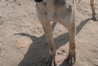 Necesita salir del refugio porque...aunque aún no sabemos que puede tener en sus patas traseras, parece que nada grave, pero el suelo de allí no le hace bien...sus patas traseras le patinan mucho sobre el suelo mojado.