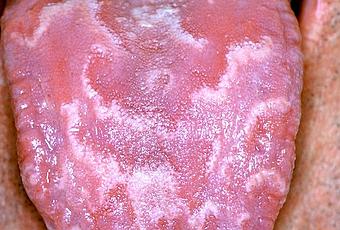 También se llama Glossitis migratoria benigna y Eritema migratorio.
