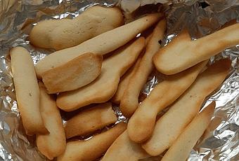 Sobre la bandeja del horno (previamente untada con mantequilla), ir haciendo "churritos". Tienen que quedar algo separados entre sí.