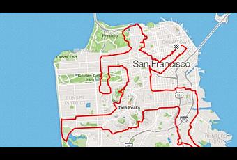 Por ahora, el artista-corredor solo ha realizado sus obras sobre el mapa de San Francisco. Imagina formas, al azar, reconocibles por todos para trazarlas sobre el mapa de la ciudad. En ocasiones el artista realiza sus dibujos en torno al mapa y no al revés, para ello, selecciona una zona concreta y trata de encajar formas en las líneas que trazan las calles y avenidas.