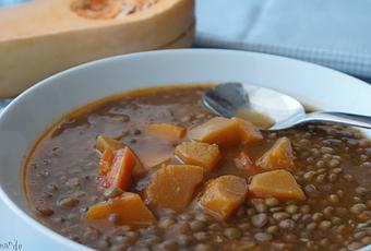 Este guiso de lentejas con calabaza, es un plato de cuchara muy de este tiempo que no puede faltar la calabaza. Se puede poner patata, pero al llevar la calabaza ya no la pongo.