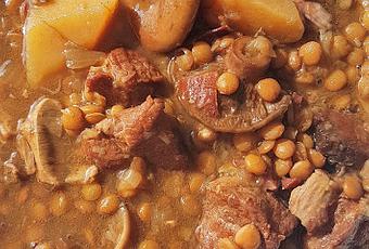 Yo las cocino en la slow cooker, porque la verdad es que las preparas por la mañana y te olvidas, no se pegan, quedan en su punto de cocción, tanto las lentejas como la carne, además las patatas también quedan fabulosas, enteras pero cocidas y con todo el sabor del guiso.