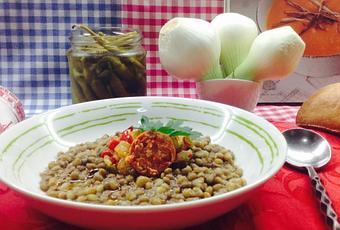 Lunes: Lentejas con sofrito de verduras y chorizo.