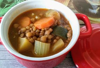 Preparación: Lavar, pelar y cortar la cebolla, el pimiento, el tomate en trozos grandes, (para a la hora de servir retirarlos) el ajo lo lavamos y lo dejamos entero. La zanahoria, el calbacin, el apio, y la patata la troceamos en trozos pequeños. Colocamos todo en una olla, le añadimos las lentejas, el aceite, la sal, el pimentón y cubrimos de agua.Deja que cuezan a fuego medio, tapadas, una media hora o 40 minutos, hasta que las lentejas estén tiernas y las verduras. Si las lentejas son ya cocidas con 20 minutos de cocción es suficiente porque si no se te pueden deshacer.