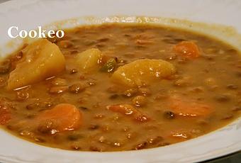 Las lentejas de toda la vida, pero echas en el robot cookeo, he seguido la que trae programada, haciendolo a mi forma.