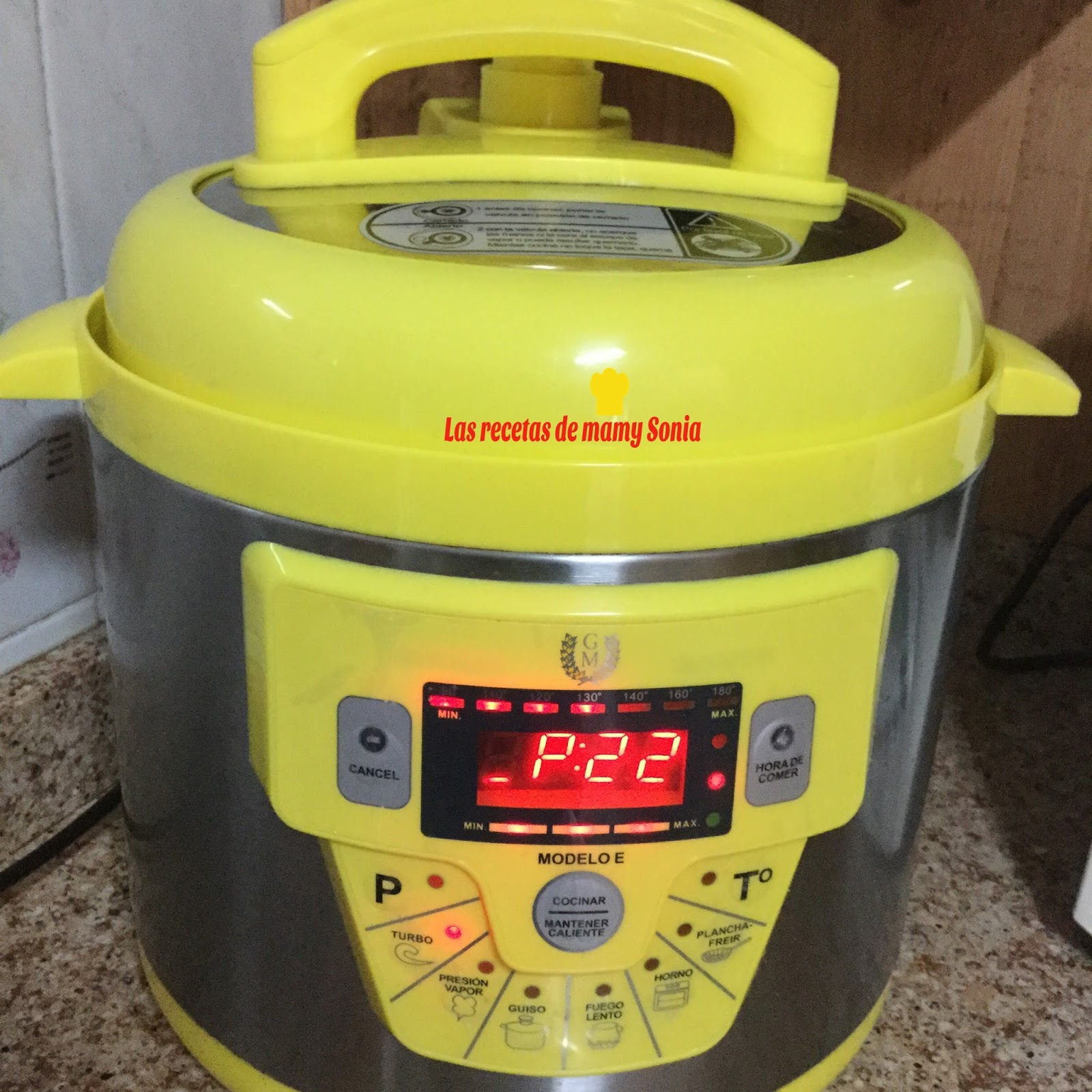 Cerramos la tapa de nuestra olla y programamosMenú Turbo 130º Presión Alta 22 Minutos