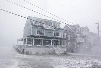 Las olas se estrellan sobre una casa durante una gran tormenta costera el 2 de marzo de 2018 en Scituate, Massachusetts. Scott Eisen / Getty Images