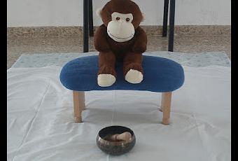 Leo, la mascota del DescanserLeo vino acompañando a Chelo, una de las participantes en el primer grupo del Descanser de Verano 2012 cuyo lema central era "El Silencio, el Corazón del Descanso".Y luego, cada vez que entrábamos en la sala para la meditación lo encontrábamos en una posición distinta. Cada vez que le mirábamos despertaba en nosotros una serena ternura.Cada vez que volvíamos a la sala nos saludaba con su presencia silenciosa, con su sonrisa, situándonos en la actividad que nos aguardaba.Leo acabó siendo un compañero, una invitación amable y tierna a cuidar nuestro propio silencio.Sólo podemos descansar dentro. Por eso, entrar en la sala es siempre una invitación a entrar en nuestro corazón…….y en el silencio, como corazón del verdadero descanso.Leo iba acompañándonos en el recorrido por cada una de las estaciones o posturas básicas del Descanser: estar de pie, caminar, sentarse y acostarse.Escuchaba atentamente las observaciones de José María. Y sobre todo saboreaba el silencio compartido del grupo.Leo despertaba una sonrisa que no quebró nuestro silencio sino que lo prolongó y lo envolvió de alegría y ternura.¿Por qué el nombre de Leo? Laura, otra de las participantes, dejó escrita en "la cajita del Silencio" un texto en el que compartía una experiencia vivida en uno de sus paseos silenciosos por la playa de Aguadulce (Almería) sobre un niño llamado Leo. (Más abajo puedes acceder a la transcripción de dicho texto o a la audición del mismo tal y como fue leído por José María en el momento dedicado a comentar las observaciones, preguntas o experiencias que los participantes van dejando en esa "cajita del silencio").Cuando José María solicitó propuestas de nombre para nuestro “monito del silencio”…. Leo fue el nombre finalmente elegido.El día de la despedida Leo se sumó a la comida….. Ya era, ya es… uno más del DESCANSER.Así es como, de un modo inesperado, espontáneo y cargado de simbolismo, Leo se ha convertido en la mascota del Descanser. Y acompañará de ahora en adelante a todas esas personas que quieran seguir descansando a los pies de ese Maestro llamado Silencio.