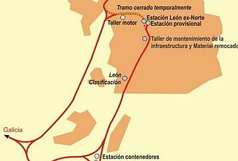 La nueva estación provisional cuenta con cuatro vías de andén y cuatro vías de maniobras, y configuración en forma de fondo de saco, basada en un andén en cabecera del que nacen otros tres en forma de “E”. Las vías lado León serán las que acojan a los trenes de alta velocidad procedentes de Valladolid y Madrid, quedando las otras dos para los trenes de ancho ibérico. Las traviesas polivalentes permitirán el rápido cambio de ancho.