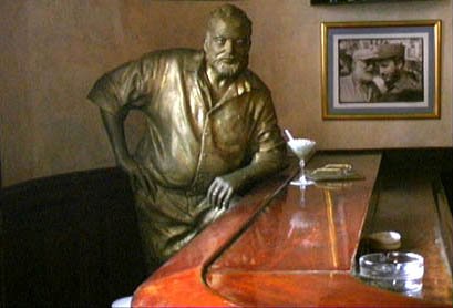 Luego, cuando él se mudó definitivamente a La Habana, se convirtió en habitual del Floridita, como sus amigas putas y sus colegas periodistas, y en honor a todos los tragos allí bebidos y al récord de daiquirís bajados en una jornada, ahora existía una placa de metal brillante dedicada a recordar su fidelidad al bar y su condición de Premio Nobel.