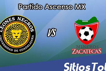 La transmisión por TV en México del partido entre Leones Negros vs Mineros de Zacatecas en el Ascenso MX se podrá ver en vivo en el horario antes mencionado por Canal 44 de la UDG (UDG TV) que es un canal regional de Guadalajara que es quién tiene los derechos oficiales de transmisión de este partido y que se puede ver por TV abierta en esa región en el Canal 44 y por tv de paga en los siguientes canales Megacable 224, Telecable 144 (Básico 83), Totalplay 144 y Axtel 144.