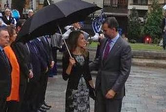 Los Príncipes de Asturias ya están en Oviedo, donde hoy comienzan los actos oficiales con motivo de la entrega de los Premios Príncipe de Asturias. Arriba les vemos a su llegada al Hotel de la Reconquista.