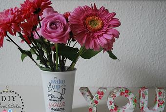 Una vez que tengamos la letra cubierta entera con una buena capa de papel, hay que dejarlo secar. ¡Paciencia! Suele tardar al menos una noche. Cuando ya esté completamente seca, podéis dejarla así o forrar la otra mitad con lana, pegarle una flor de fieltro en uno de los bordes o lo que queráis.