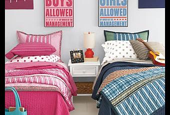 Como pasa el tiempo... Este embarazo me lo estoy tomando con demasiada calma, y tengo que empezar a hacer algo!!!!!!!! Como tengo casi todo del hermano (eso sí, en azul celeste), no necesito comprar muchas cosas, pero lo que sí quiero hacer antes de que nazca es preparar la habitación para los 2. Es verdad que la pequeñina dormirá conmigo una larga temporada (o muy larga, porque soy muy fan del colecho), pero me da igual. Quiero tenerla preparada.Tengo claro que van a compartir habitación durante unos cuantos años, porque yo también la compartí con mi hermano de pequeños y creo que eso al final une, jejejje!!! Mucha gente me dice que les separe, pero a mi me parece una tontería! Son niños y de momento juntos. Cuando sean más mayores ya les separaré! Además la habitación de los juguetes está genial, y así se va a quedar!!Como son de distinto sexo, no quiero hacer algo ni muy de niña ni muy de niño... bufff que lío!!!!!!!! Buscando por internet he encontrado diferentes opciones: