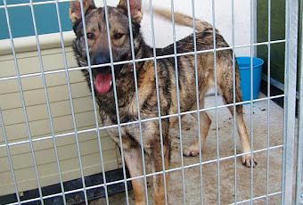 Levis llegó a la perrera con una herida gigante en un costado, supurando y muy asustado... tenia miedo a la gente, y sobre todo a las correras.. aullaba como un loco cuando lo intentabas sacar del chenil con correa, aun hoy le ocasiona un trauma el hecho de tirar un poco de el con la correa... a saber lo que ha tenido que pasar el pobre... de todas formas tuvo mucha suerte de que la bala no le llegara de frente si no que le alcanzara paralela lo que le destrozo parte de la musculatura y piel... tenia hasta el cartucho dentro... se lo extrajeron y curaron, le dimos puntos y solo queda una cicatriz... pobre... Levis es super limpio, cariñoso y mimoso... solo quiere estar con personas que le acaricien y den mimos, agacha la cabecita y te mira desde abajo pidiendote por favor que no te vayas... te destroza con la mirada... necesita una casa, una cama, un compañero fiel que le de la seguridad que perdio por algún retrasado que penso que seria divertido dispararle... por favor ayuda para levis, ha sufrido mucho y se merece una oportunidad... es un macho grande de unos 30 kilos, pelo semilargo atigrado, expresion super dulce que solo representa la mitad de lo dulce que es...