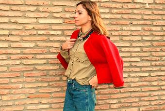 Los combino con esta chaqueta tipo chanel roja (ideal para el tiempo primaveral que tuvimos unos días en Febrero y que de aqui a nada volveremos a tener), y que no os enseñaba desde aqui, hace ya más de un año, una camisa verde caqui con tachas y este collar de Zara de la temporada otoño-invierno que siempre le da el toque a cualquier look.