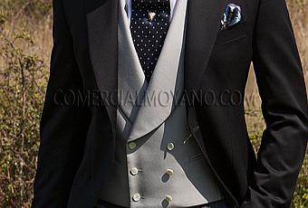 En cuanto a colores, dependerá de diversos factores como por ejemplo del modelo de levita, el momento del día… Los colores más claros como azulones o gris perla, son los más adecuados para las bodas de día, hasta las 19:00 de la tarde. Estos colores reflejan la luz y son más vistosos por la mañana que por la noche. Al caer la tarde/noche los colores más oscuros como los granates, negros o grises ocuparan su lugar, son más elegantes y más adecuados para estas horas del día. Elegir correctamente el color de una levita, es casi tan importante como saber con qué combinarla. Ello dependerá del nivel de formalidad que queramos darle. En el caso de ser más formal, nos decantaremos por combinar la chaqueta con el mismo color del pantalón, o en su defecto con la clásica raya gris. Por el contrario para restarle formalidad combinaremos una levita oscura con un pantalón de un tono inferior. Como por ejemplo una levita gris marengo con un pantalón gris perla o una azul marino con un pantalón gris.