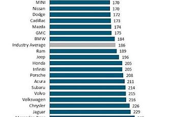 El J.D. Power 2023 U.S. Vehicle Dependability StudySM (VDS), informa de una media del sector de 186 problemas por cada 100 (PP100) vehículos, una mejora de 6 PP100 desde 2022. El estudio examina el rendimiento actual de los vehículos modelo 2020 en términos de calidad, sustitución de componentes y atractivo -incluyendo aquellos vehículos con nueva tecnología- y ayuda a los fabricantes de automóviles a diseñar y construir mejores vehículos para resistir el paso del tiempo y promover un mayor valor de reventa. Un PP100 más bajo indica un mayor rendimiento.