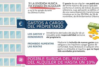- Gastos a cargo del propietario. Los gastos derivados del alquiler del inmueble serán responsabilidad exclusiva del propietario. Por otro lado, la normativa también prohíbe incluir nuevos gastos que obliguen a los inquilinos a pagar gastos de comunidad, tasas de basura o cualquier otro gasto no atribuible al inquilino, que no hayan sido acordados previamente.