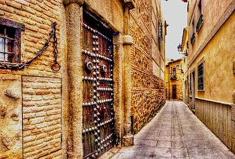 En los sótanos de esta casa trabajaba nuestro protagonista, bajo un hermoso patio y tras amplios muros que bastante ocultaban del intenso calor del verano toledano y apartaban del trabajo las curiosas miradas de los vecinos y transeúntes. Algunos comentaban que esta casa no era propia de un converso, aunque no sabían que había sido dada por un afamado caballero en pago por unos magníficos trabajos realizados. Estos pedidos seguían llegando, pues la guerra en Granada seguía su trámite…