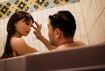 Hombre y muñeca en el baño. Foto Behrouz Mehri, AFP/El País.