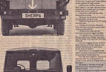 El modelo Sherpa, tanto de la camioneta, como del furgón que vemos en la vieja publicidad, de hoy viernes de la sección “Publicidad Extranjera”, se comenzó a fabricar, en Gran Bretaña, en el año 1974.