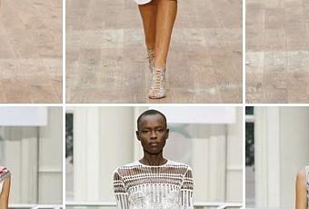 Julien Macdonald presenta una colección llena de vestidos, tanto largos como cortos, lujosa y en colores neutros y azules.
