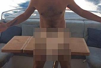 En la foto, el cantante se encuentra de pie, en la parte de atrás de un yate con cara de sorprendido.