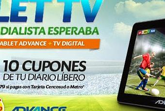 La asociación comercial entre la empresa peruana de tecnología Advance, el grupo periodístico La República y la tienda comercial Metro parece ser rentable. Hace apenas un mes que promocionaron la tablet Advance TR 3547 que denominaron con fines publicitarios “para niños” (aunque en realidad es una tablet normal a la que vistieron con una funda protectora de diseño infantil y le instalaron algunas aplicaciones para niños que se pueden descargar de la Play Store de Google) y hoy ofrecen a los lectores del diario Líbero una nueva y mejor promoción: una tablet dual core con TV a 299 soles.