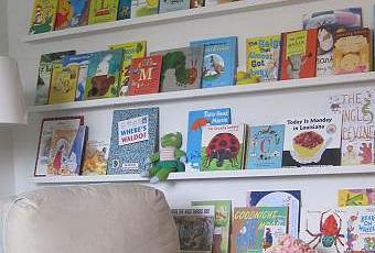 Hoy, paseando por Pinterest, me he enamorado de este rincón de un dormitorio infantil. Me ha gustado mucho la estanteria para libros formada por baldas tal y como vemos en las librerias de las tiendas. De esta forma se pueden poner los libros con la tapa a la vista y tener todos los cuentos a mano. En esta foto la estanteria es muy grande, ocupa toda la pared, pero si no disponemos de tanto espacio, la podemos hacer en versión "mini" que seguro que también queda estupendamente.