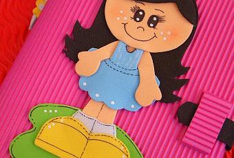 La funda es de goma eva y la libreta lleva pastas de plástico duro, está encuadernada en espiral y cuenta con 80 hojas.