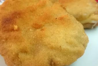 Lomo de cerdo: 8 filetes.Bacon: 2 lonchas.Queso en lonchas: 4.Aceite de oliva virgen extra.Huevo: 1.Pan rallado.Maizena.