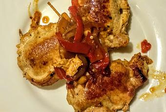 Libritos de lomo de cerdo rellenos con jamón cocido y queso, es un plato estupendo y sabroso que gusta a todos.