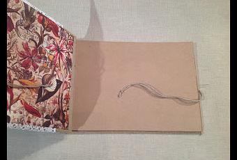Libro de firmas para boda de inspiración rústicaLibro de firmas realizado en arpillera y tira bordada en crochethojas de papel kraft