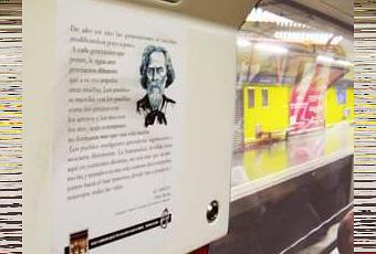 Precisamente existe una iniciativa propuesta por la Comunidad de Madrid y la Asociación de Editores para fomentar la lectura y descubrir o releer obras maestras de autores fundamentales. Hablamos de Libros a la Calle, que dicho así puede que no se tenga mucha idea de en qué consiste, pero seguro que al viajar en Metro, Autobús o Cercanías, habremos visto una serie de pequeños carteles con extractos de novela o poesía de autores ultraconocidos.